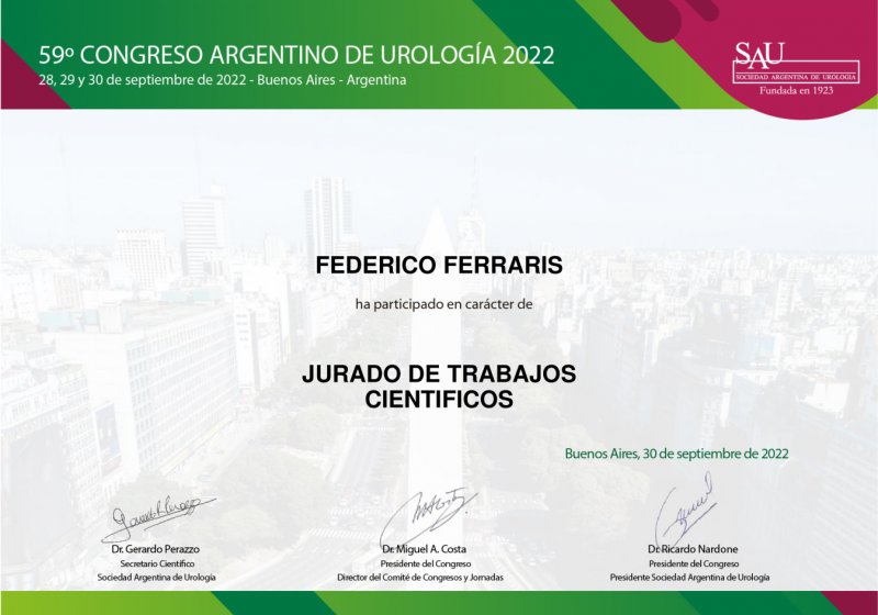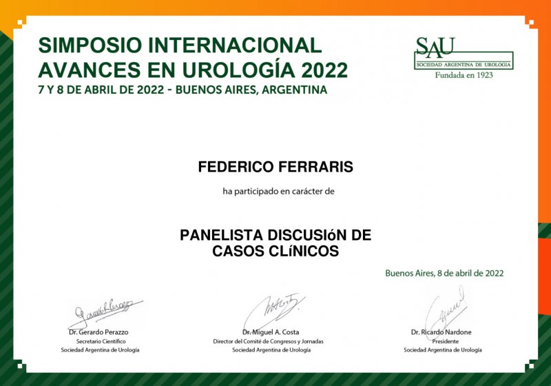 Especialista Consultor en Urología – Sociedad Argentina de Urología